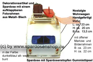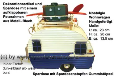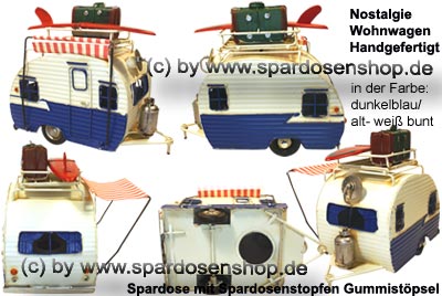 - ✅ 1 x Nostalgie Wohnwagen Spardose dunkelblau-weiß