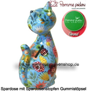 Spartier Katze Caramel hellblau – Pomme Pidou Spardose mittelgroß
