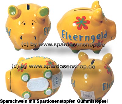 Sparschwein „Elterngeld“ – witziges Sparschwein Dunkelgelb
