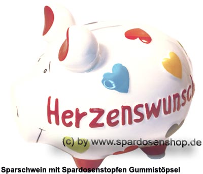 Sparschwein „Herzenswunsch“ Mittelgroß – mit bunten Herzen & Gummistopfen